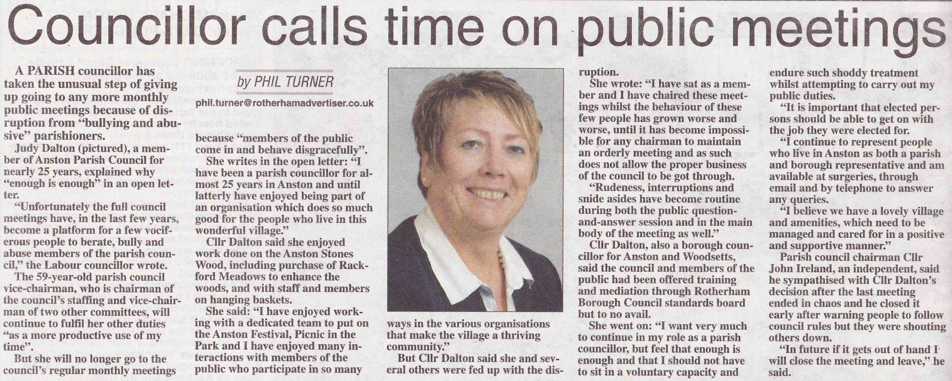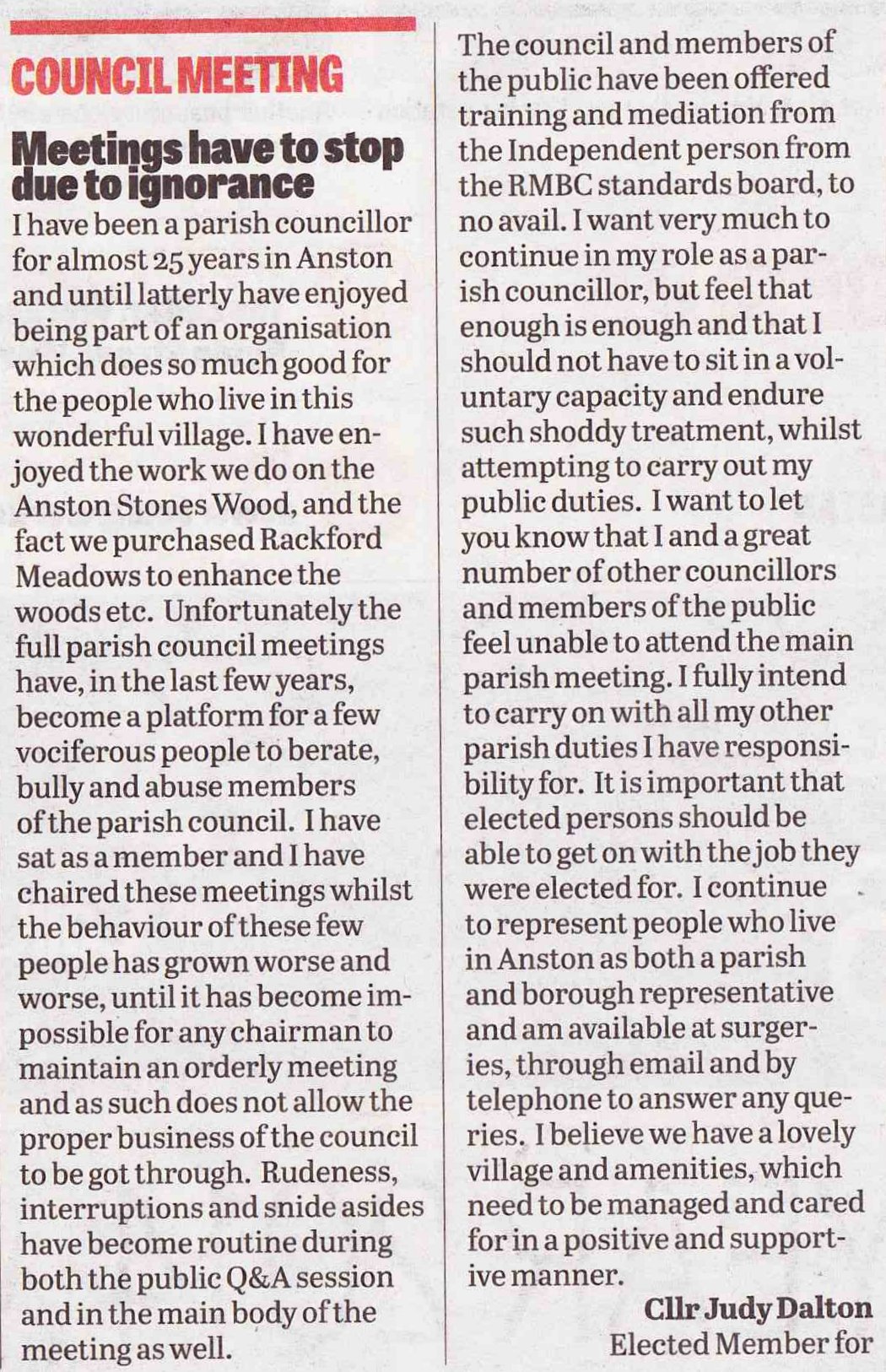 Ralph McIver has also chosen not to continue as Dinnington’s chair, is no longer on the Council and no longer a member of the Labour party.
